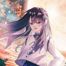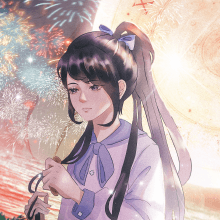 霓虹微亮的夜市,旅人與島民抬頭望向星空,期待著劃破天際的焰火再次升空。