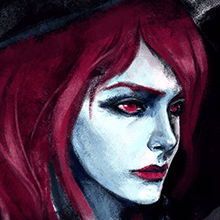 女,長髮火紅,皮膚如雪,猩紅的瞳孔映照著世間的罪惡,婀娜的身姿散發著邪惡的氣息,顯得血腥而美麗。